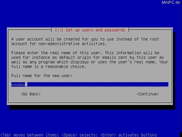 Enter a login name for a standard user account to be created. In the next screen enter a password for this account. After this step the installation routine will copy some files.